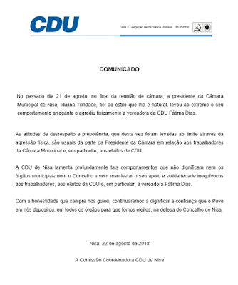 Comunicado da Comissão Coordenadora CDU de Nisa