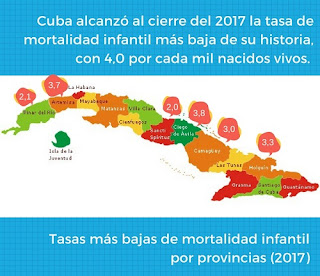 Los medios de prensa nacionales e internacionales, en sus primeras ediciones del año, se hicieron eco de los logros de Cuba en la atención materno infantil, al alcanzar la más baja tasa de mortalidad en su historia: 4,0 por cada mil nacidos vivos; cifra reportada por el ministro de Salud Pública de Cuba, doctor Roberto Morales Ojeda, en un acto donde se presentaron los principales resultados del Sistema Nacional de Salud en el año 2017.